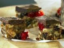 Once set, tip out onto a cutting board, peel off the parchment and with a sharp knife cut the slab into small squares and serve.