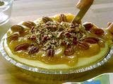 Mix the reserved pie filling and caramel topping in a small saucepan and heat for about 1 minute, or until spreadable. Spoon the apple-caramel mixture over the top of the cheesecake and spread evenly. Decorate the edge of the cake with pecan halves and sprinkle with chopped pecans. Refrigerate the cake until ready to serve.