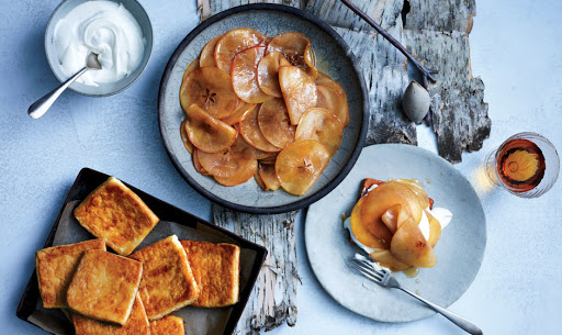 Let guests assemble individual mille-feuille, topping pastry with apples, whipped cream, and a drizzle of maple syrup.