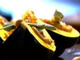 In a bowl, cream the butter with the sugar, and almond liqueur. With a brush or a spoon coat the cut sides of each squash half with the butter mixture and put 2 sage leaves on top of each. Sprinkle with the crushed cookies. Bake until tender, 30 to 35 minutes, basting every 15 minutes with any remaining butter.