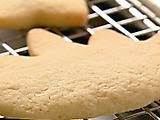 Sprinkle a suitable surface with flour, place disk of dough on it, and sprinkle a little more flour on top of that. Then roll it out to a thickness of about 1/4-inch. Cut into shapes, dipping the cutter into flour as you go, and place the cookies a little apart on 2 parchment or silpat lined baking sheets.