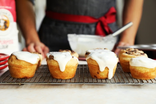Whisk together the powdered sugar and water or cream to create a thick and smooth glaze. Frost the rolls and enjoy!