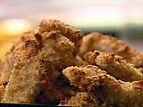 Tip the cracker crumbs into a wide shallow bowl, and then shake off the excess buttermilk from the nuggets and dip them in the crumbs. Coat them well before lying gently in the hot oil, and cooking for about 2 minutes or so a side until they are golden brown. Transfer to a kitchen towel on a plate to blot the excess oil.
