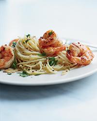 In a large saucepan, heat the olive oil. Add the shrimp, panko, crushed red pepper, garlic and lemon zest. Season with salt and pepper and cook over moderately high heat, stirring occasionally, until the shrimp are just cooked through, about 6 minutes.