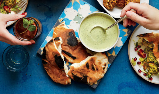 With motor running, gradually drizzle in ¾ cup water and process, adding more water to thin if needed, until sauce is light green and the consistency of sour cream. Season with salt.