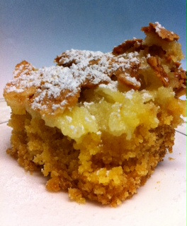 I adopted this easy making and delicious cake from Paula Deen's recipe. It's not those diet and less fat cakes and that's why they are so yummy and gooey! I used 1 cup less sugar than the original recipe and still sweet enough for me. Eat small piece even you may want more...stay healthy.