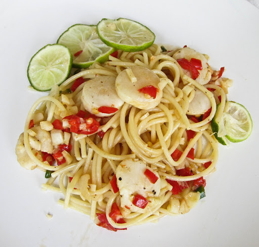 This is a delicious blend of flavors, the tart lime and hot chile does make for some great tasting scallops!