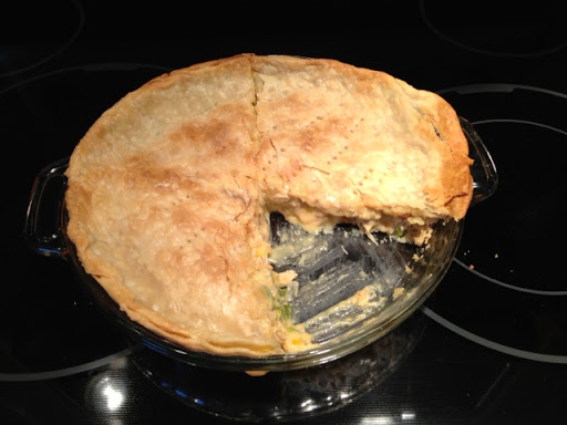Line a Pie Plate with 1 ready made crust. Blend flour and Cream of Chic soup in saucepan. Add Chic ala King, Chic/Turkey, Peas and Carrots and bring to a boil. Pour mixture over crust and cover with the 2nd crust. Seal edges and pierce the top with a fork in a few places.
