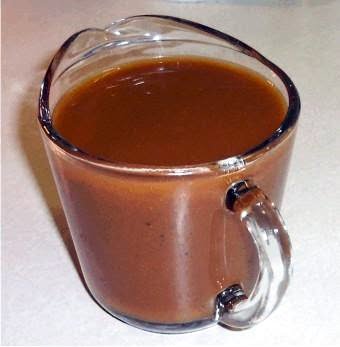 For each cup of gravy, take 1 tablespoon of butter and melt in heavy saucepan. Add one tablespoon of flour and stir and cook until flour is slightly "browned". Take one teaspoon of granulated bouillon (I use Wylers) and place in one cup of water. Microwave bouillon and water for 2 minutes.