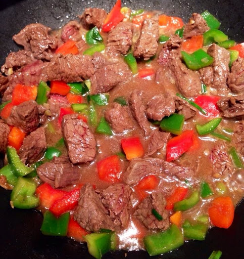 Heat oil in wok (or large non-stick skillet). Add beef and stir fry til browned.