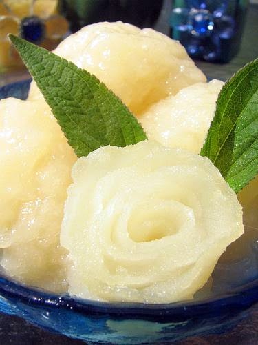 Remove the sorbet from the freezer 10 minutes before serving. Serve the sorbet in chilled stemmed glasses.