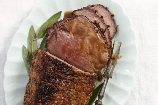 Oven-sear roast, uncovered, at 450°F (230°C) for 25 minutes. Reduce heat to 325°F (160°C); roast for 80 minutes or until thermometer registers 140°F (60°C) for medium-rare, 155°F (68°C) for medium. Transfer to cutting board; tent with foil. Let stand for 10 to 15 minutes for temperature to rise 5°F (3°C) more before carving. Reserve juices.