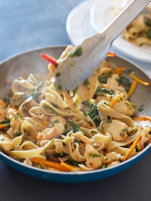Tagliatelle with Prosecco Chicken, Rainbow Chard & Heirloom Carrots