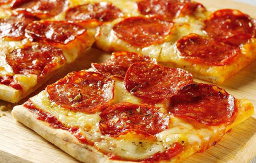“As kids, this homemade pizza smothered with melted mozzarella and sliced spicy pepperoni was our favorite dish. ”