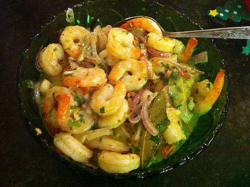 In a clean, nonreactive container, layer the shrimp and the pickling liquid. Repeat. Cover and let sit in the fridge for 24 hours. In a pinch, you can do this all in a large sealable bag. Serve with toothpicks and a pile of napkins, or incorporate into a pickled shrimp salsa.