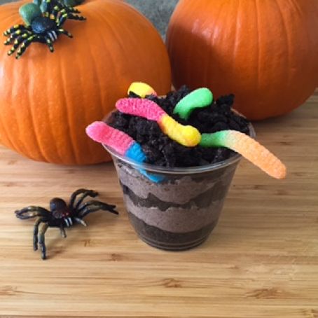 Delicious Creepy Dirt Cups have worms coming out of the 'dirt' that is make from crushed Oreo cookies. Layered with chocolate pudding, everyone will want to eat dirt!
