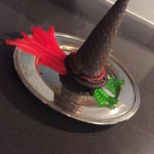 Add another layer of the crushed cookies, and another layer of the pudding. Finish up by adding sour gummy worms.