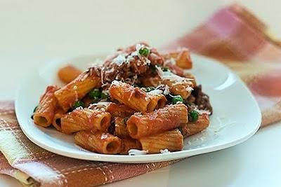 Rigatoni with Sausage, Peas, Tomatoes, and Cream