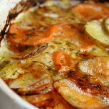 Place in a 9-x-13-inch baking dish or 2-quart gratin dish, overlapping slices to fit in one layer.