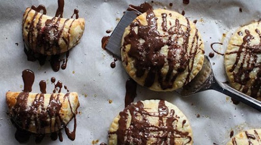 Alternately, add the apple and pear mixture to the center of one disc, lightly brush the edge of the circle with egg wash and top with another disc and crimp edges with the tines of a fork.