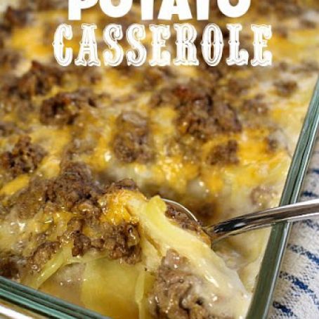 Preheat oven to 350 degrees and lightly grease an 9 X 13 baking dish. In medium skillet, cook the onions and ground beef until done. Drain the grease. In a medium bowl, mix together the milk, soup, salt and pepper. Layer half of the potatoes, hamburger meat. soup, and then the cheese. Repeat with the rest of the potatoes, hamburger meat, soup and then the cheese. Cover with aluminum foil and bake for 1 1/2 hours or until the potatoes are tender. Uncover for the last half hour of cooking.
