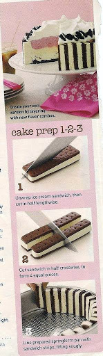 -Spread mint ice cream on bottom,then top with vanilla and strawberry,spreading all layers level