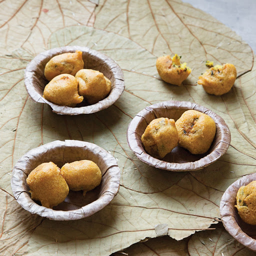 Mashed potatoes are seasoned with cumin, mustard seeds, curry leaves, ginger, and chile; balls of the aromatic mash are then coated in a turmeric-accented chickpea-flour batter and deep-fried until crisp and golden.