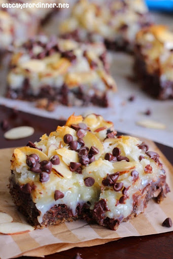 . Cut into 9-12 squares. DO NOT cut the bars while they are still warm or the gooey filling will run all over the place.