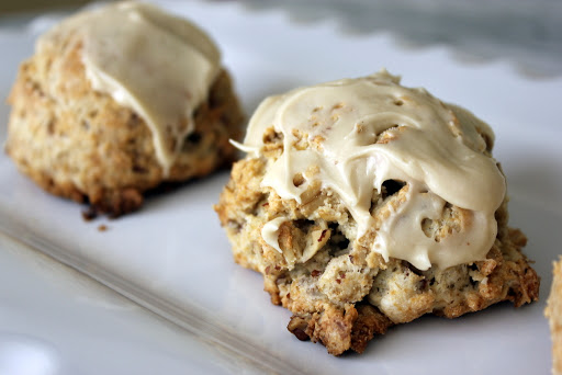 Mix the ingredients for the maple glaze in a medium bowl and whisk until smooth. Spread evenly over the top of the cooled scones. Store at room temperature for up to one day.