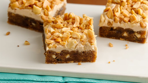 Meanwhile, in small bowl, mix frosting and remaining 1 teaspoon maple extract until smooth. In another small bowl, mix peanuts, toffee bits and 1/2 teaspoon salt. Spread frosting evenly over cooled bars. Sprinkle with peanut mixture; press in lightly. Refrigerate about 30 minutes before cutting. Cut into 4 rows by 4 rows. Store covered.