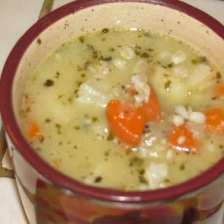 Boil broth and barley in a large pot over high heat. Once boiling reduce heat to medium and simmer 50-55 minutes.