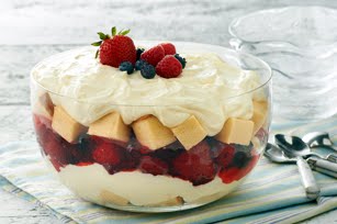 PLACE half the cake cubes in bottom of large serving bowl; cover with half the pudding mixture. Top with layers of gelatin mixture, remaining cake cubes and remaining pudding mixture. Refrigerate 1 hour.