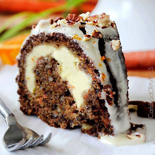 Spoon 3 cups batter into prepared bundt cake pan. Spoon Cream Cheese Filling over batter and gently smooth, but do not touch the sides of the pan. Top with remaining batter.