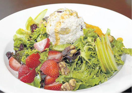4 In a large bowl, combine remaining apple and walnuts with mixed greens, strawberries and oranges. Toss with vinaigrette and divide among plates. Top with chicken salad.