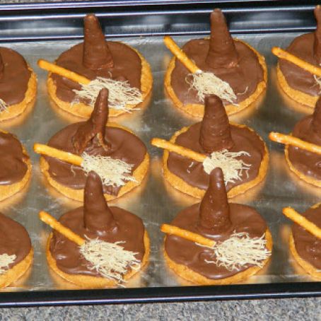 Witches hat and broom stick cookies are perfect for Halloween parties, or even a Wizard of Oz movie party! Tip is using Bugles for the hat!
