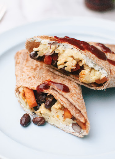 Breakfast Burritos with Sweet Potato Hash and Black Beans