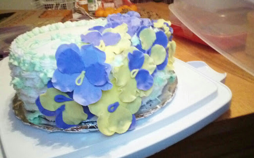 vanilla until combined .Mix on high for 2 minutes. Add eggs,and beat for 2 more minutes. Pour into 2-9" pans. Bake for 30-35 minutes or until toothpick