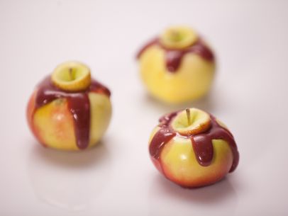 Using a melon baller, hollow out the crab apples. Fill the centers with the creme brulee and bake until the creme brulee is set. Chill overnight.
