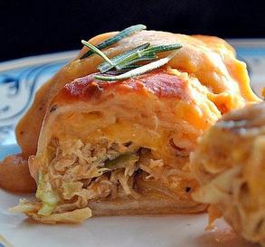 Roll enchiladas and place seam-side down in 9x13" baking dish that has been lightly sprayed with no-stick cooking spray.