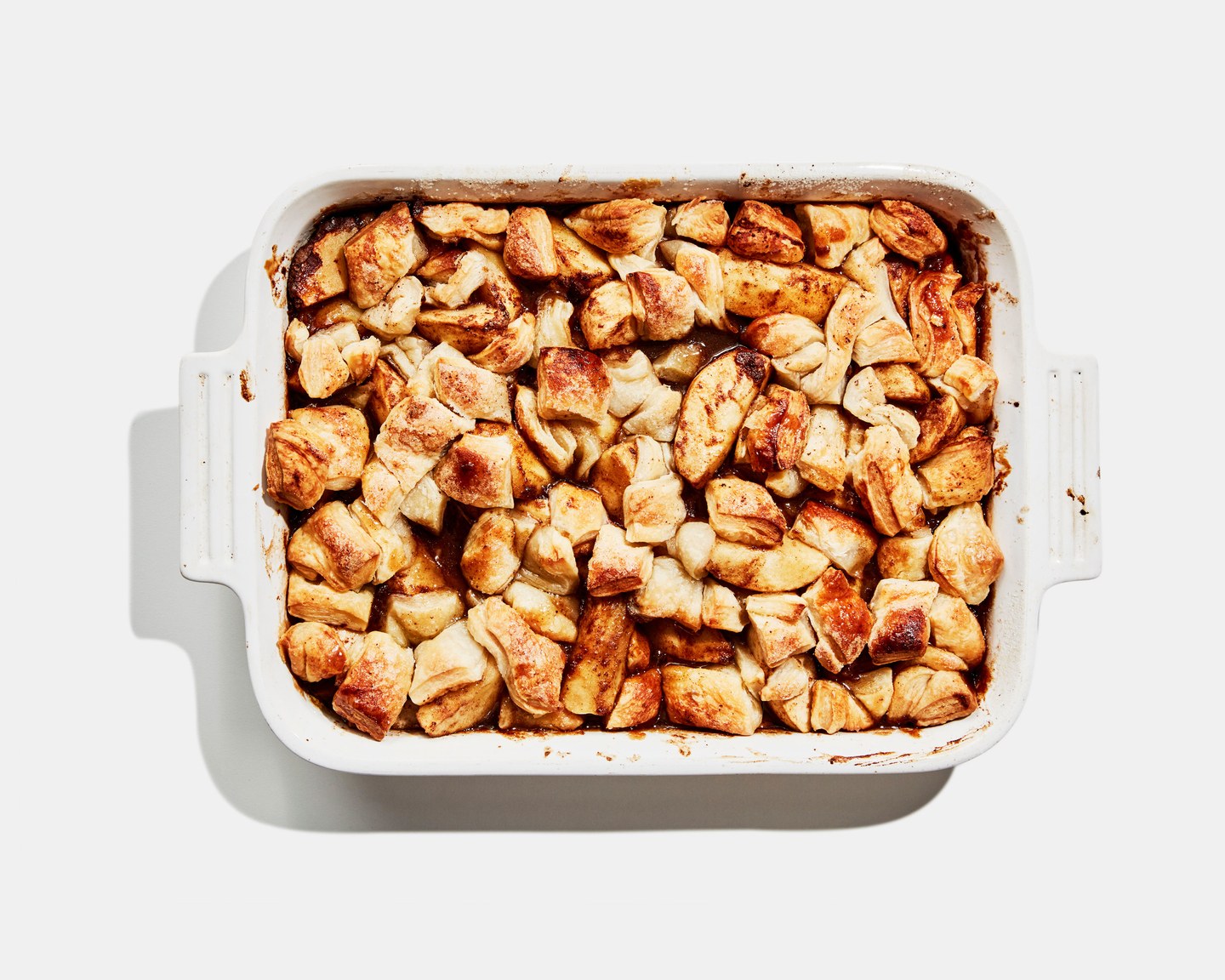 Arrange pieces of puff pastry over apples, overlapping but spreading to cover almost completely. Brush pastry with remaining brown butter. Sprinkle with granulated sugar.Slide 1 of 3PreviousNextBake pandowdy until pastry is puffed and golden around edges, 25–30 minutes. Reduce oven temperature to 350° and continue to bake until juices are thick and bubbling and pastry is brown all over, 30–35 minutes longer.Using a spoon, press pastry down into warm juices (but don’t submerge); let cool slightly.Serve pandowdy warm with ice cream.