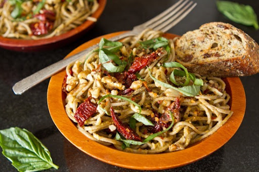 Spaghetti with Sun-dried Tomatoes, Parm and Basil
