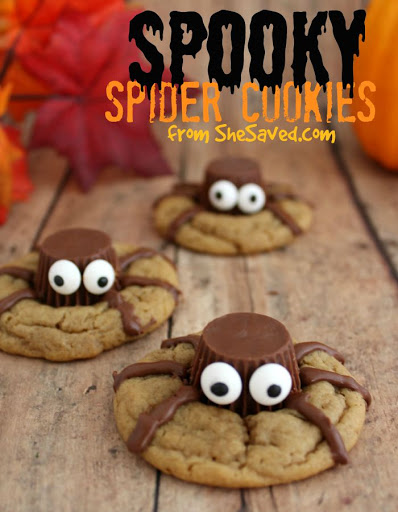 I love simple and I love fun halloween themed treats. These Spooky Spider cookies are so fun to make (the kids will love helping you) and they also make for a fun treat to bring to parties and gatherings. The kids love the little eyeballs and all of the spooky (ok, cute!) spider cookies look awesome on the table.