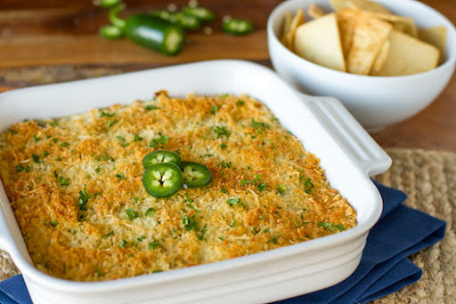 Bake uncovered at 350 degrees for 25-27 minutes, until golden brown. Serve with tortilla or pita chips.