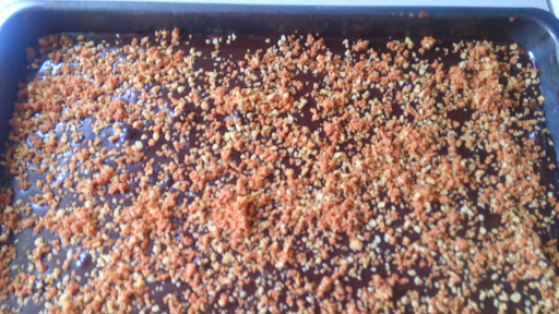 FINELY chop remaining Oreo's. Microwave sweetened, condensed milk approx 2 minutes until almost boiling. Add Chips and 1 teaspoon Pumpkin Spice Coffee Syrup and set aside until they start to melt, then stir smooth. Drizzle chocolate over bars and sprinkle remaining cookies for garnish. I opted to use 1/2 of "frosting" and store rest in fridge. Amount of frosting is really personal preference - you CAN use whole batch.