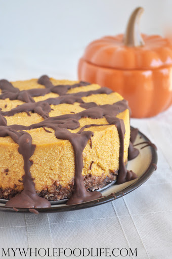 Drizzle the chocolate over the top of the cheesecake. Place back in the fridge for another 30 minutes.