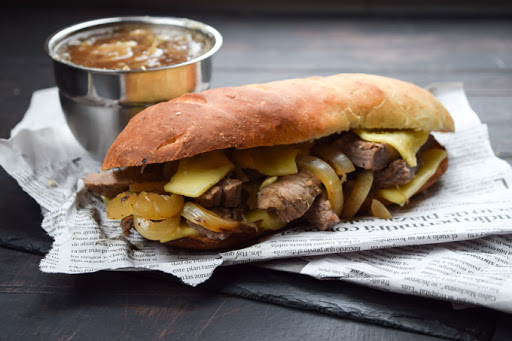 Coffee & Soy Marinated Steak French Dip Sandwiches