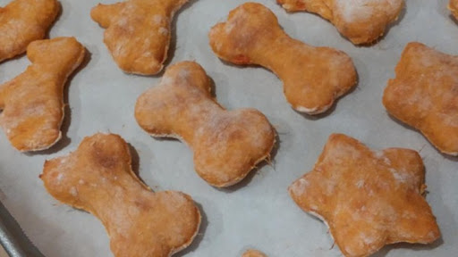 Easy to make treats for your dog. You know you're feeding her with a healthy dog treat, where sweet potatoes and applesauce are the main ingredients.