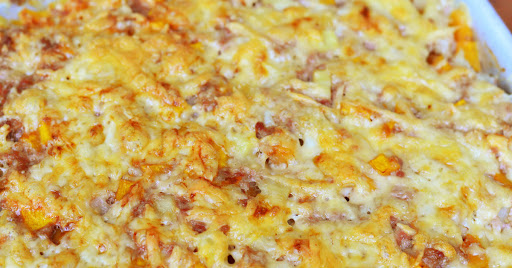 Spaghetti is baked with a cream cheese sauce and topped with a beefy tomato sauce, all in one casserole. Perfect recipe to make ahead and pop in the oven when you get home from work.