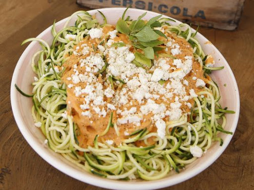 Zucchini Noodles With Red Pepper and Goat Cheese Alfredo