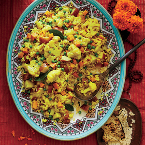 This ancient dish traces its roots to India's Kayastha community, who developed it as a unique variation of biryani. In tahiree, rice and other elements cook together, while biryani rice is cooked separately and then layered with meat and vegetables. Saran uses Royal Chef's Secret basmati--available at Asian markets--because it has the longest grain. He fluffs gently with a carving fork to keep grains intact.